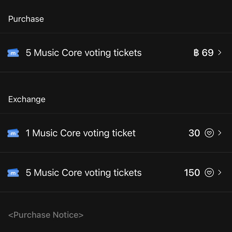 ใช้สำหรับการโหวตรอบ live-voting ระหว่างรายการ จำกัด 5 ใบต่อแอคเค้าท์